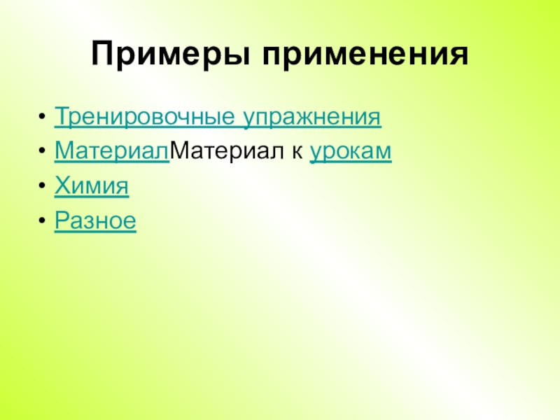 Примеры применения Тренировочные упражненияМатериалМатериал к урокамХимияРазное