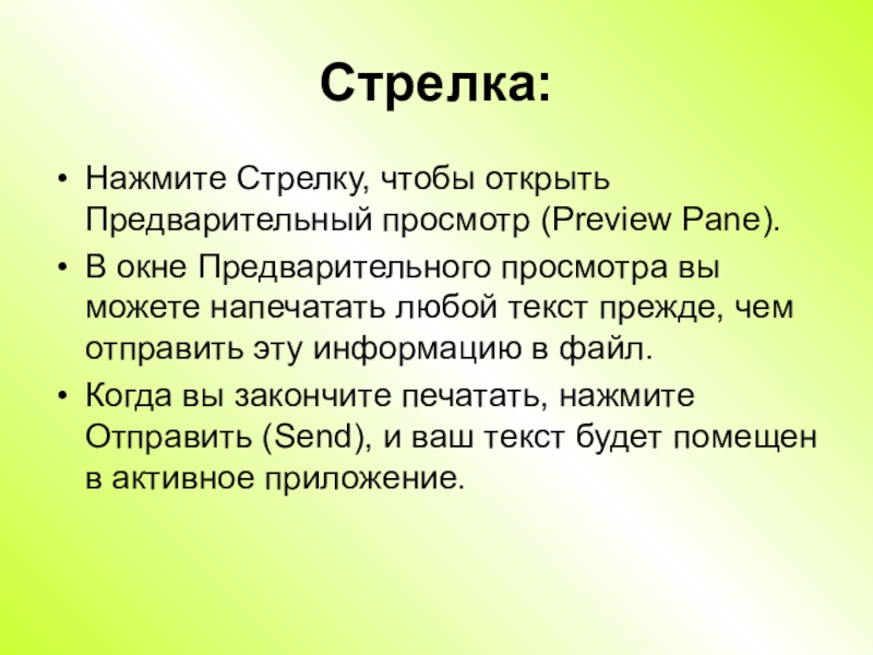 Стрелка: Нажмите Стрелку, чтобы открыть Предварительный просмотр (Preview Pane). В окне Предварительного просмотра вы можете напечатать любой