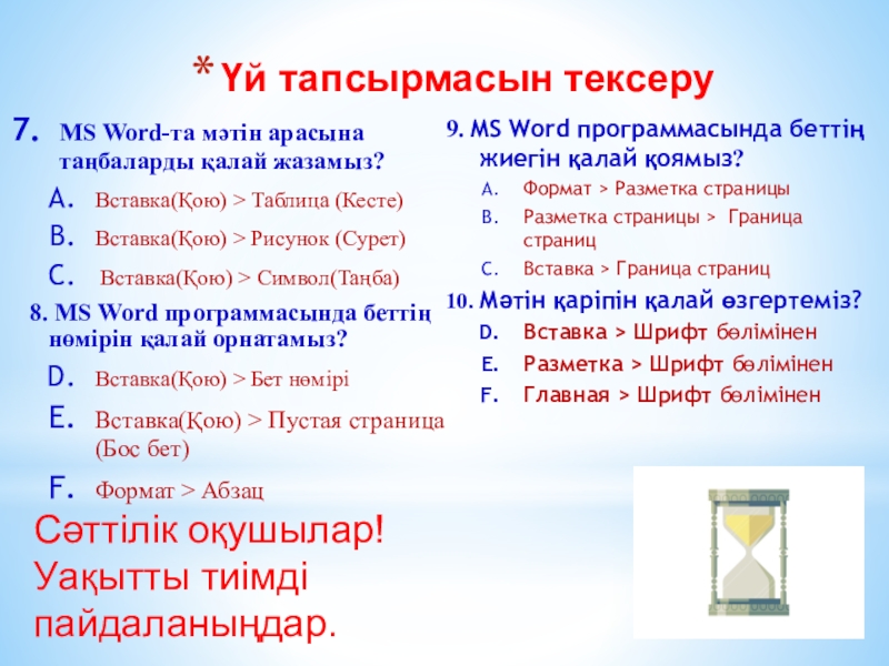 9. MS Word программасында беттің жиегін қалай қоямыз?