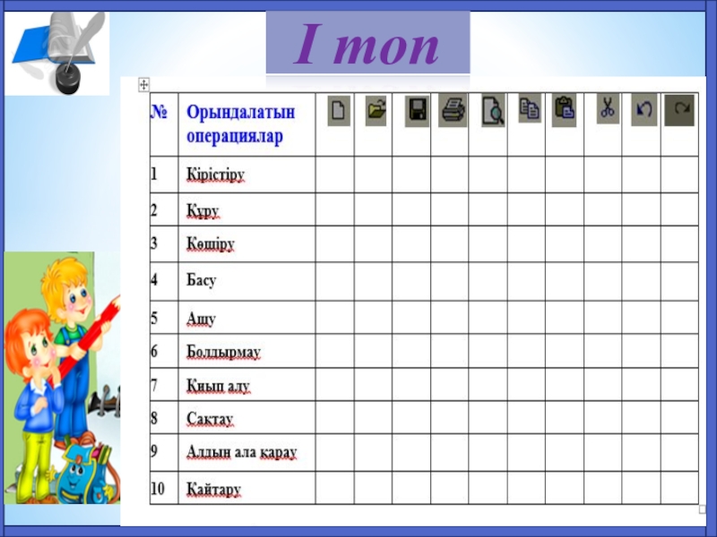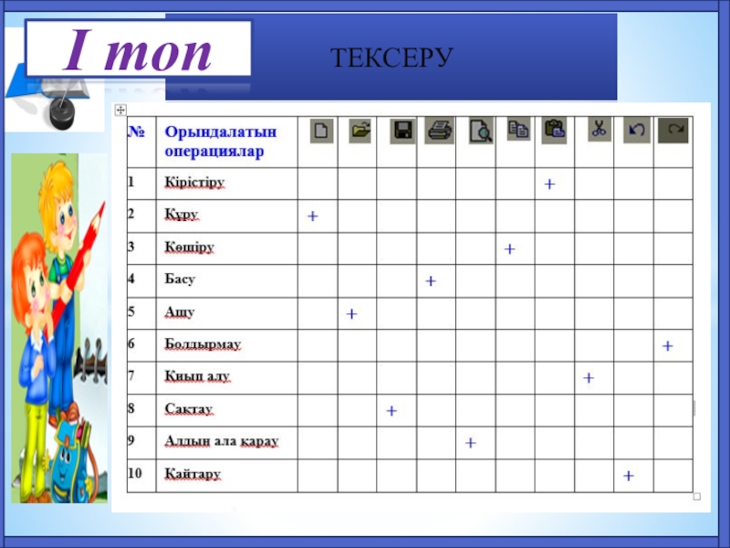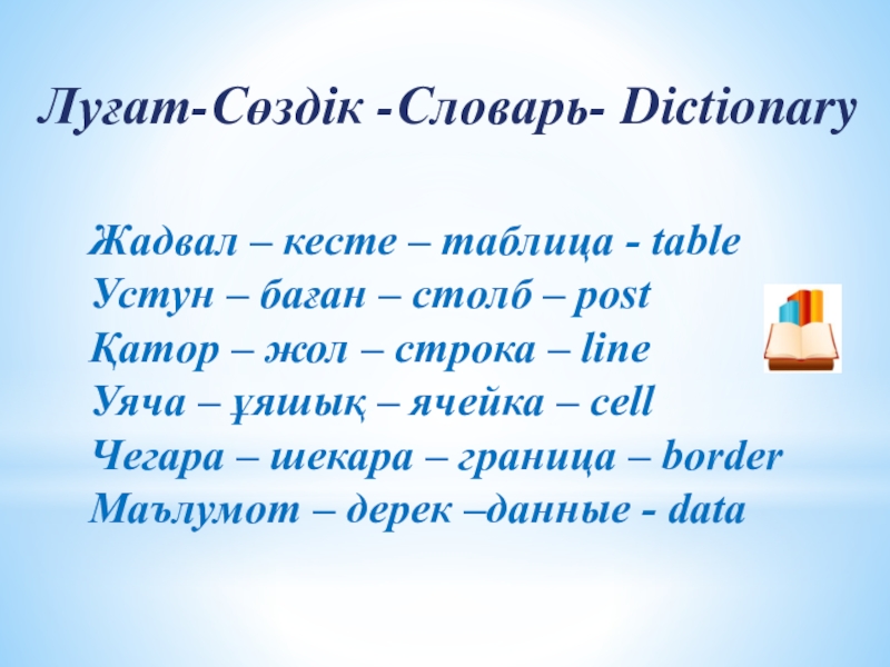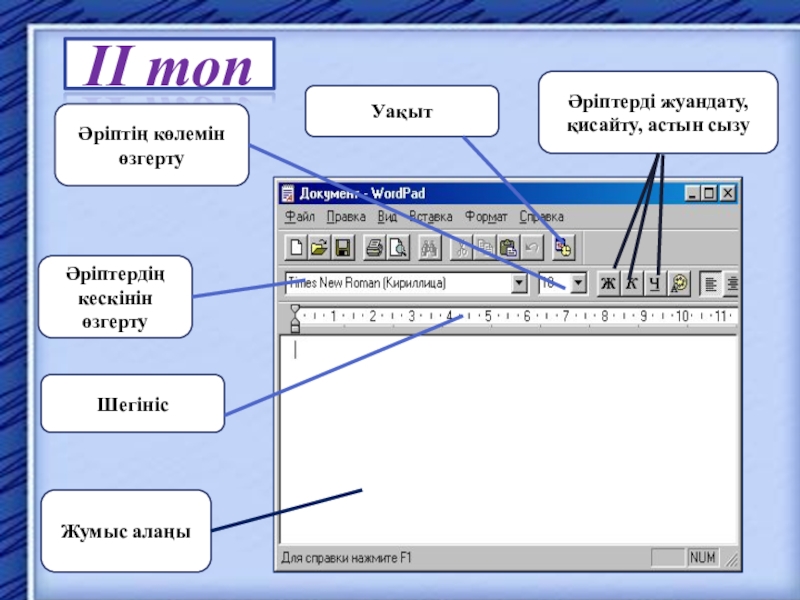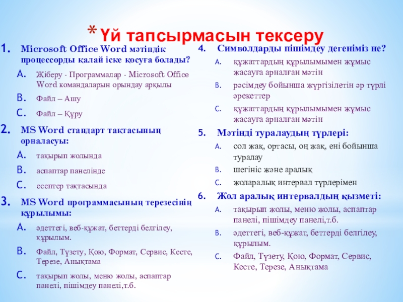Файл, Түзету, Қою, Формат, Сервис, Кесте, Терезе, Анықтама