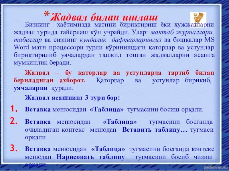 Это сайт презентаций, где можно хранить и обмениваться своими презентациями, докладами, проектами, шаблонами в формате PowerPoint с другими пользователями. Мы помогаем школьникам, студентам, учителям, преподавателям хранить и обмениваться учебными материалами.