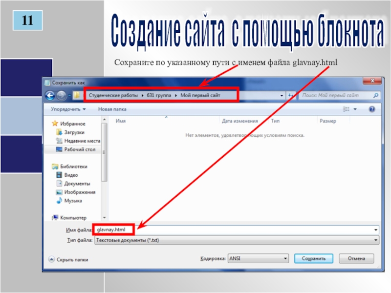 Сохраните по указанному пути с именем файла glavnay.html Создание сайта с