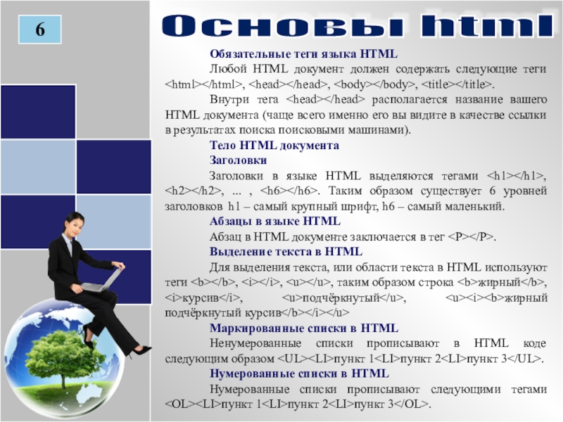 Список рекомендуемых Интернет-ресурсов: Сайт «Хочу все знать», статья «Основы языка HTML»,