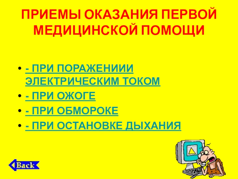 Слайд 14ПРИЕМЫ ОКАЗАНИЯ ПЕРВОЙ МЕДИЦИНСКОЙ ПОМОЩИ