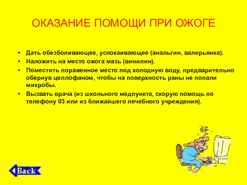 Слайд 16ОКАЗАНИЕ ПОМОЩИ ПРИ ОЖОГЕ