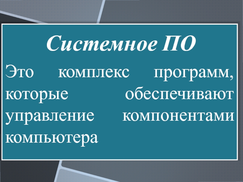 Это комплекс программ, которые обеспечивают управление компонентами компьютераСистемное ПО