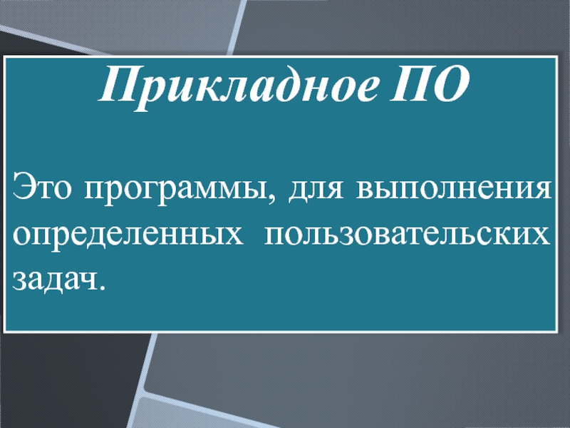 Это программы, для выполнения определенных пользовательских задач.Прикладное ПО