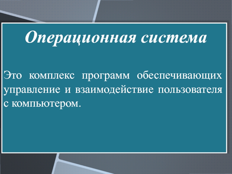 Операционная системаЭто комплекс программ обеспечивающих управление и взаимодействие пользователя с компьютером.