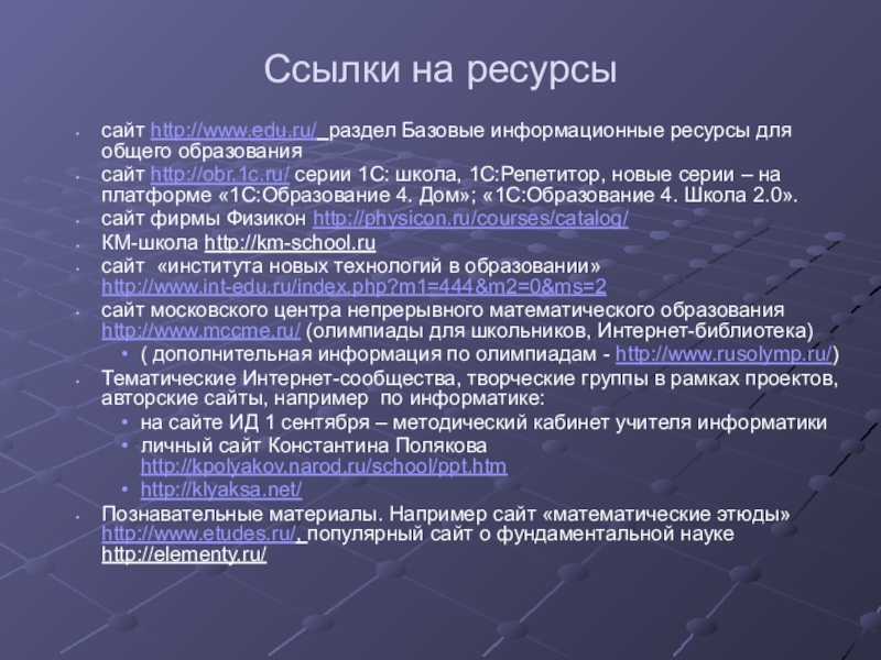 Слайд 7Ссылки на ресурсы