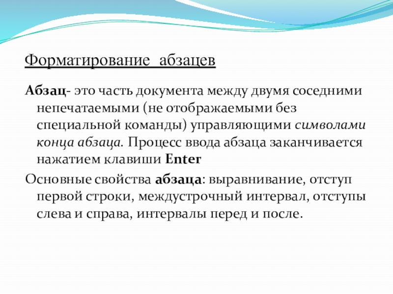 Слайд 9Форматирование абзацев