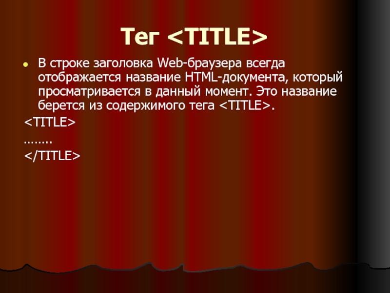 Тег В строке заголовка Web-браузера всегда отображается название HTML-документа, который просматривается в данный момент. Это название берется