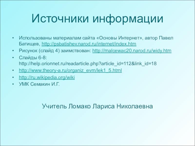учитель: Ломако Лариса Николаевна