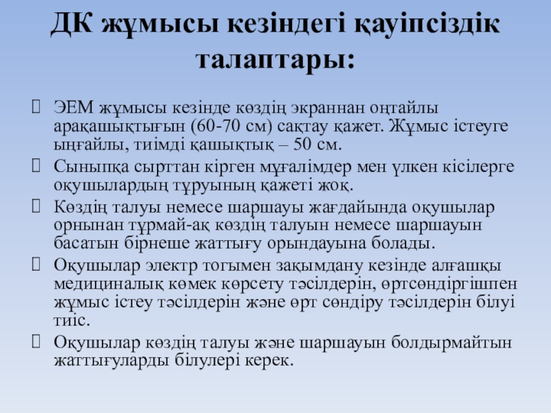 Слайд 5ДК жұмысы кезіндегі қауіпсіздік талаптары: