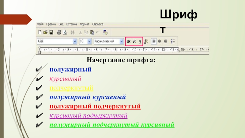 ШрифтНачертание шрифта:полужирныйкурсивныйподчеркнутыйполужирный курсивныйполужирный подчеркнутыйкурсивный подчеркнутыйполужирный подчеркнутый курсивный