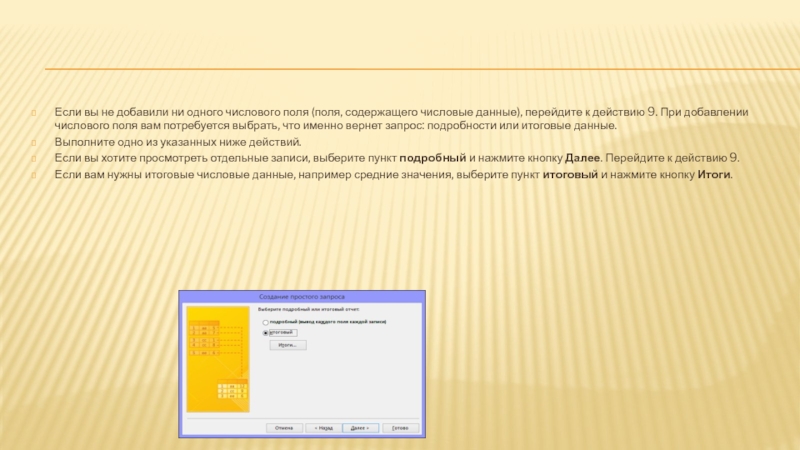 Слайд 14Если вы не добавили ни одного числового поля (поля, содержащего числовые