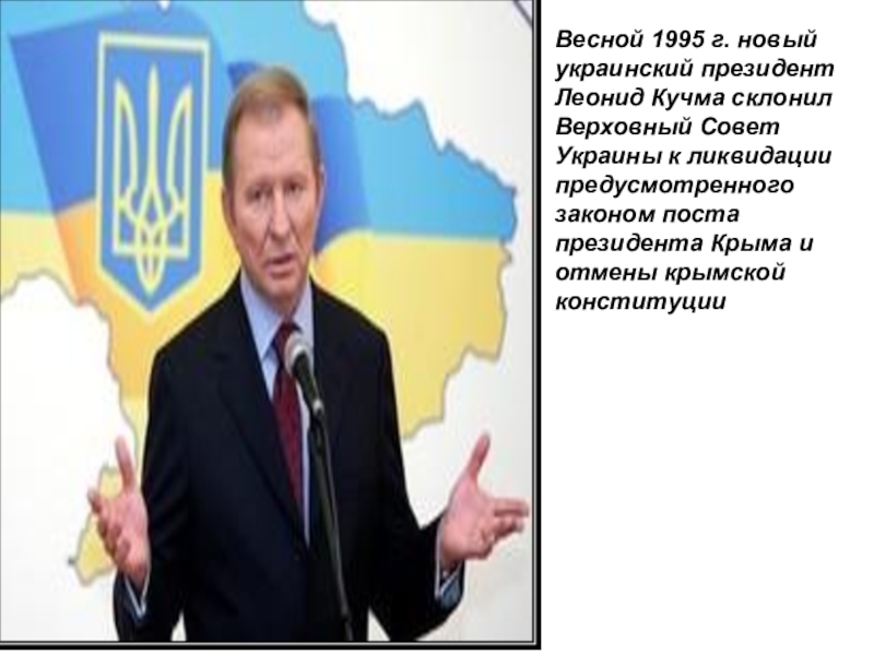 Слайд 28Весной 1995 г. новый украинский президент Леонид Кучма склонил Верховный Совет