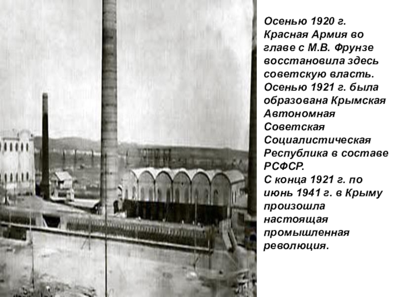 С конца 1921 г. по июнь 1941 г. в Крыму произошла настоящая промышленная революция.