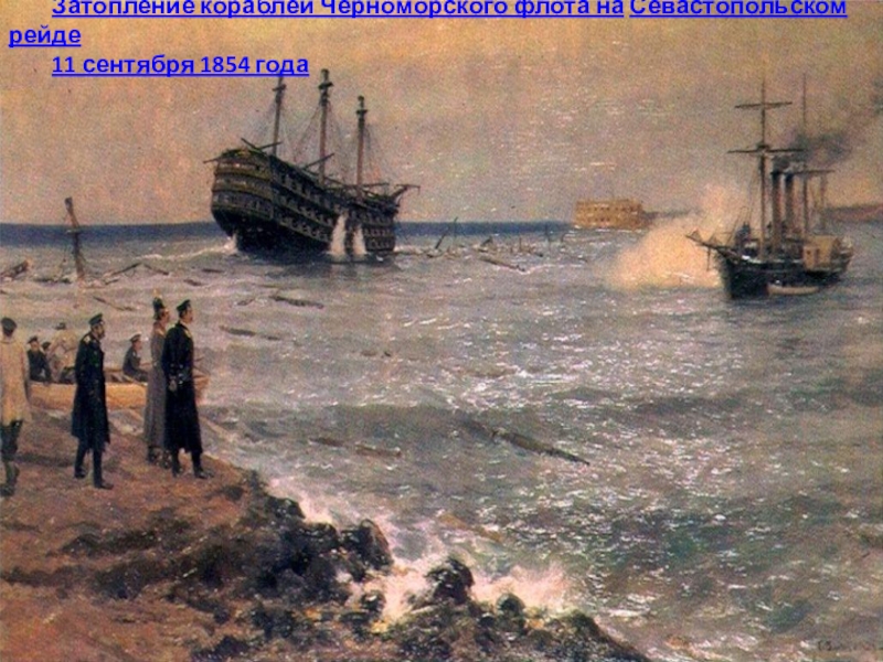 Слайд 18Затопление кораблей Черноморского флота на Севастопольском рейде