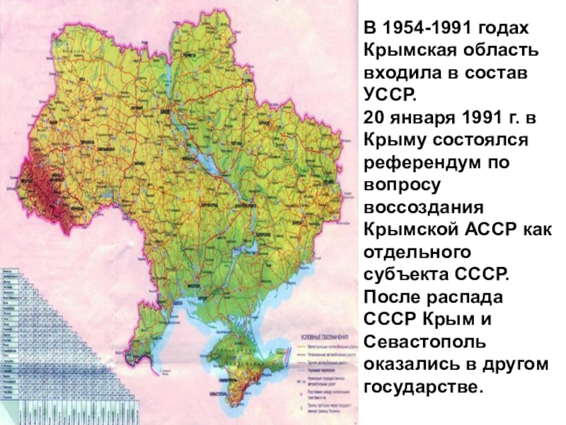 Слайд 27В 1954-1991 годах Крымская область входила в состав УССР.