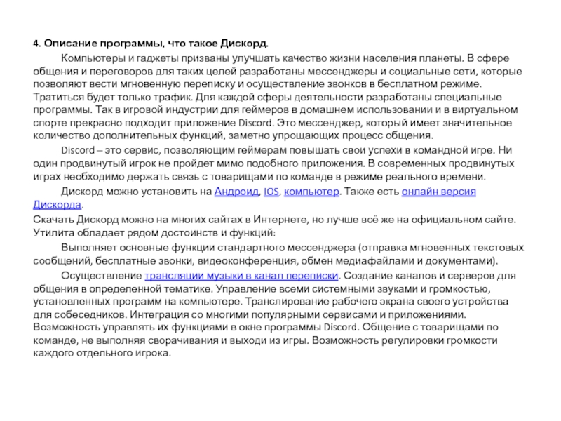 4. Описание программы, что такое Дискорд.