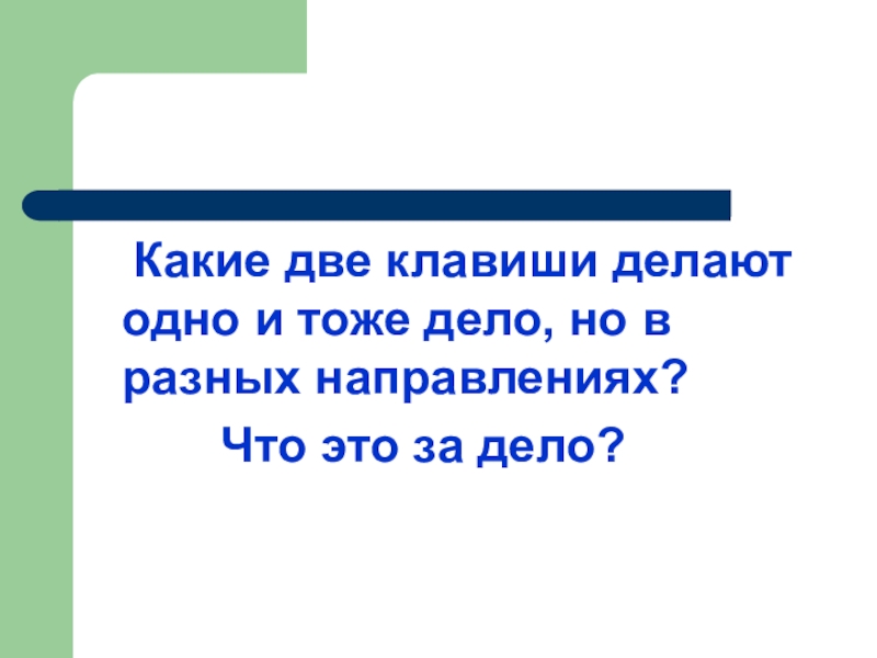 Слайд 7 Какие две клавиши делают одно и тоже дело, но в разных