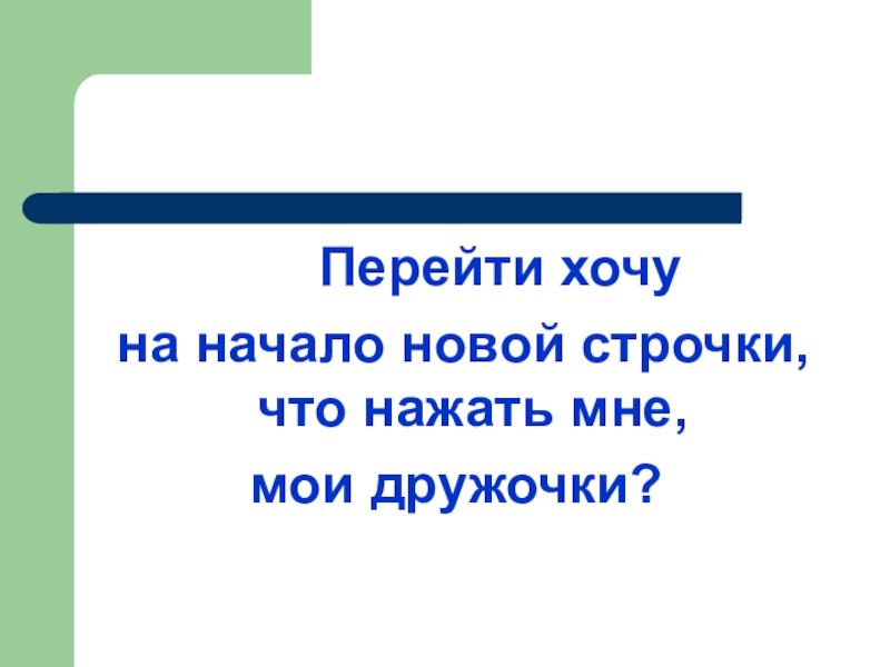 Перейти хочу на начало новой строчки, что нажать мне, мои дружочки?