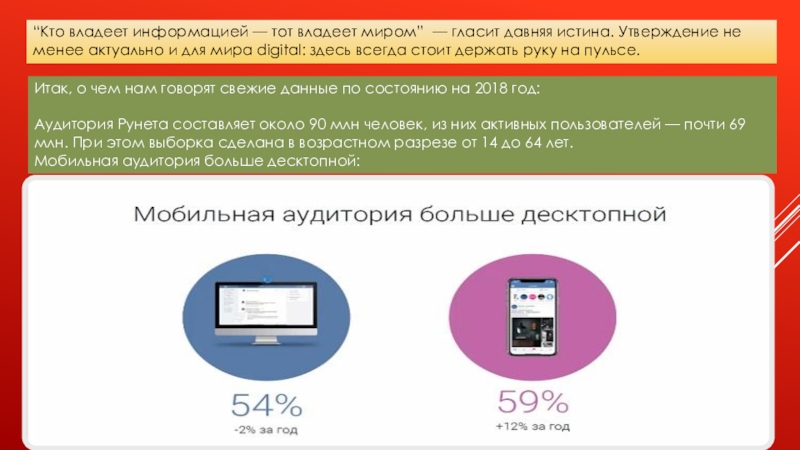 “Кто владеет информацией — тот владеет миром” — гласит давняя истина. Утверждение не менее актуально и для мира digital: здесь всегда стоит держать руку на пульсе.