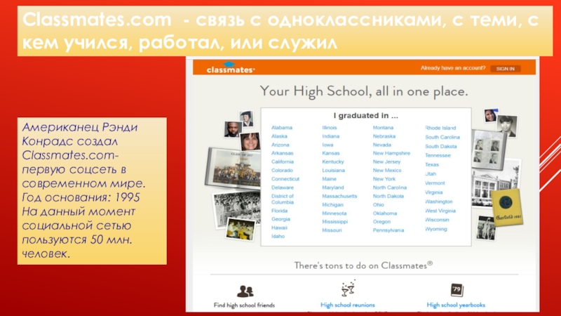 Classmates.com - связь с одноклассниками, с теми, с кем учился, работал, или служил