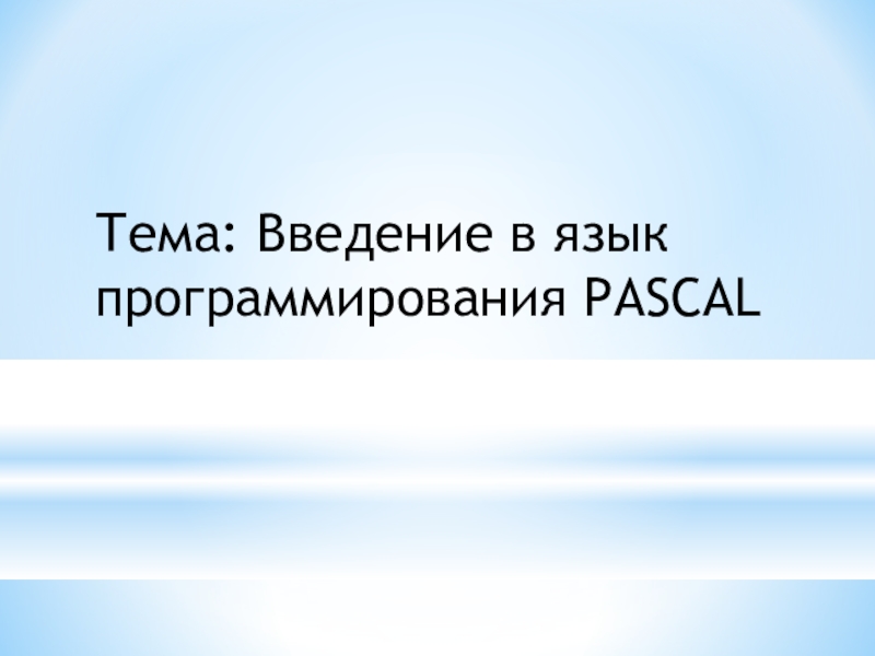 Слайд 2Тема: Введение в язык программирования PASCAL