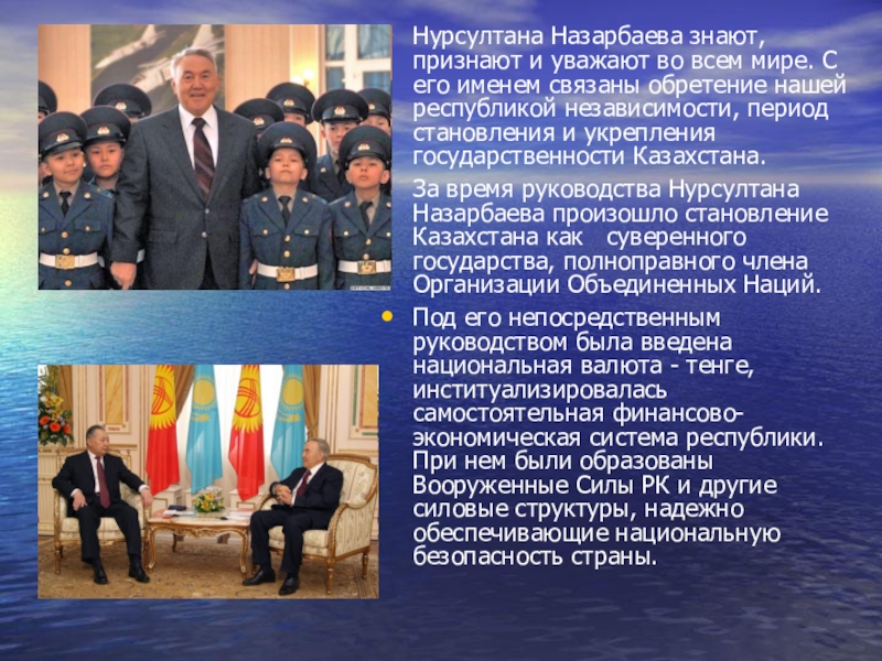 Слайд 63Нурсултана Назарбаева знают, признают и уважают во всем мире. С его
