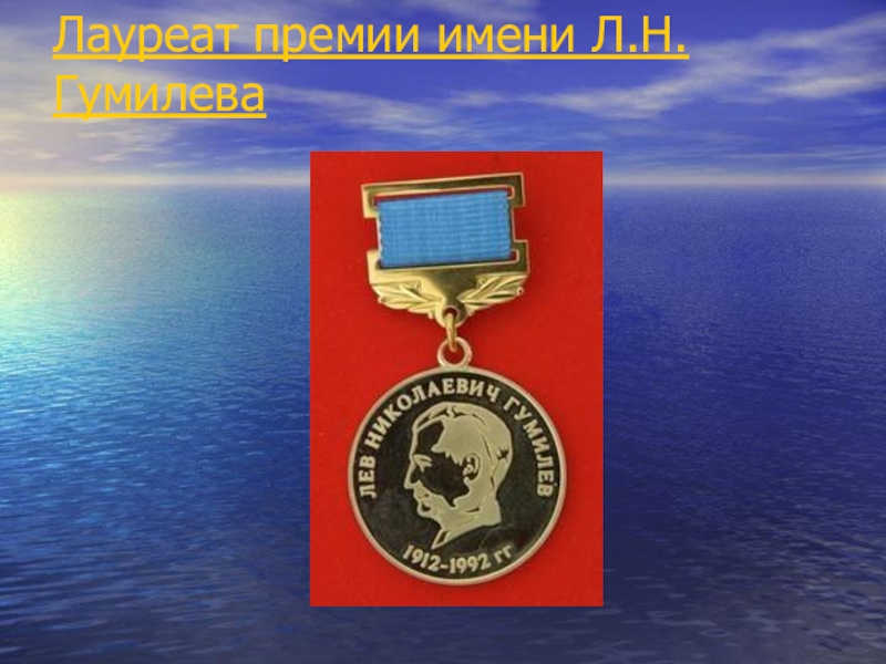 Слайд 46Лауреат премии имени Л.Н.Гумилева