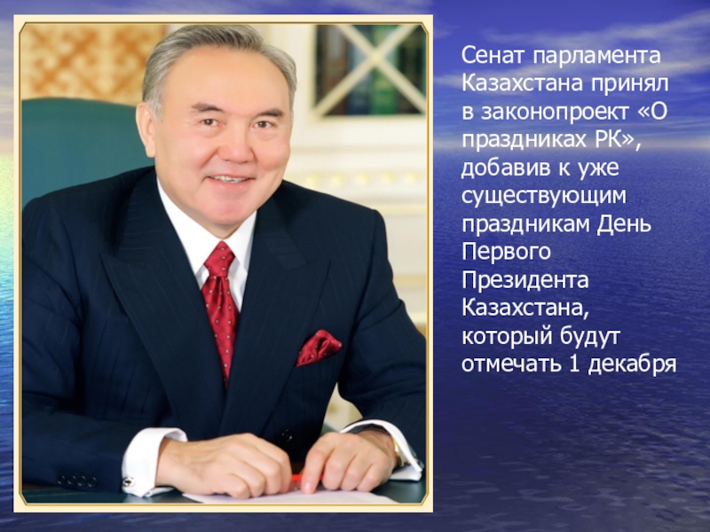 уже существующим праздникам День Первого Президента Казахстана, который будут отмечать 1 декабря
