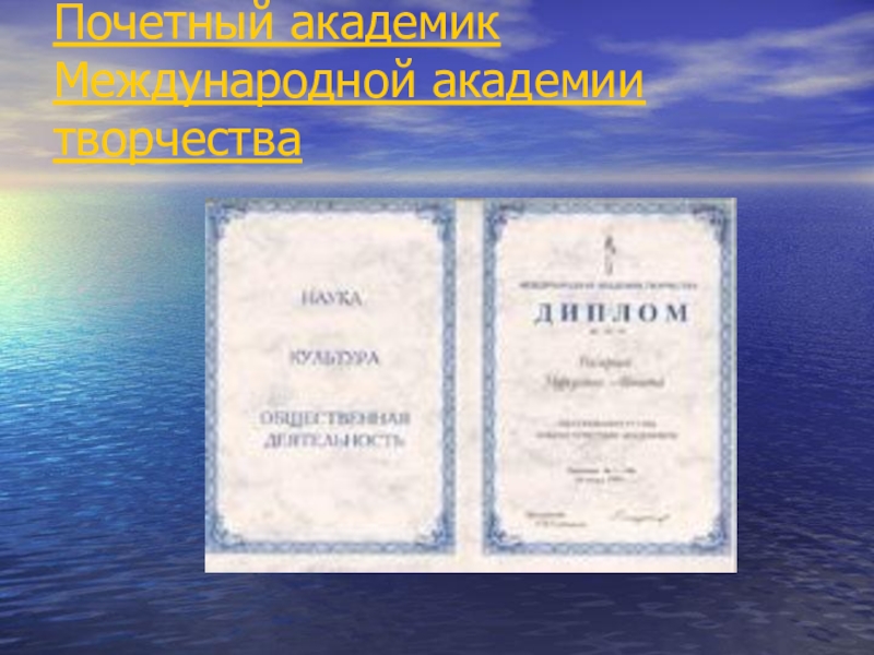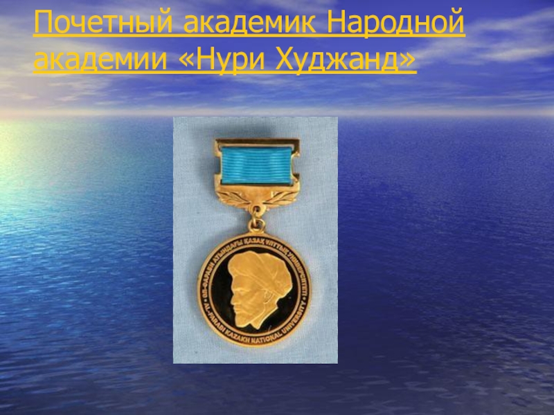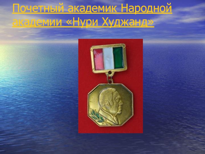 Слайд 38Почетный академик Народной академии «Нури Худжанд»