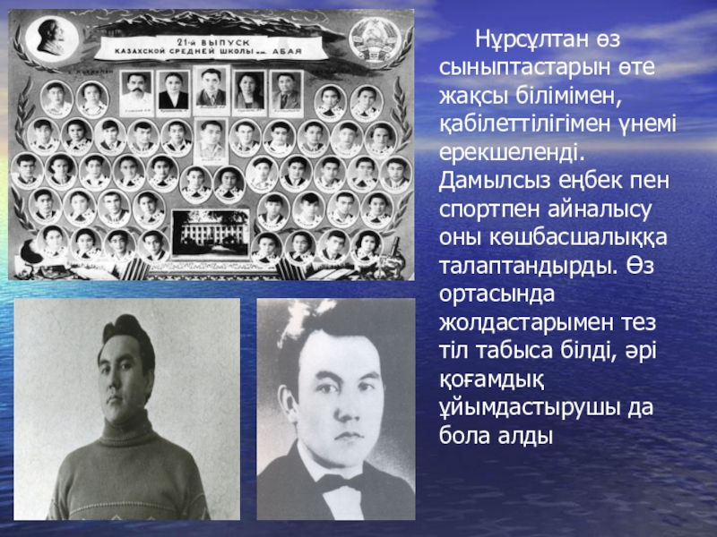 Слайд 11 Нұрсұлтан өз сыныптастарын өте жақсы білімімен, қабілеттілігімен үнемі ерекшеленді. Дамылсыз еңбек