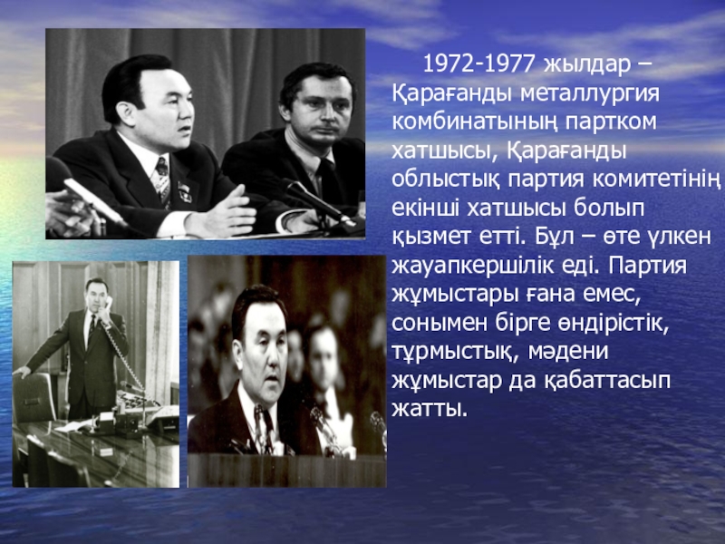 Слайд 19 1972-1977 жылдар – Қарағанды металлургия комбинатының партком хатшысы, Қарағанды