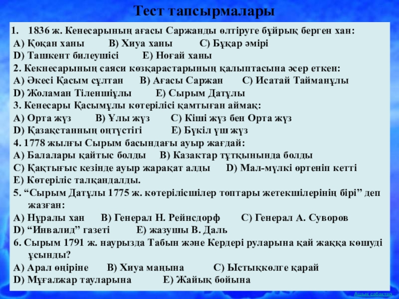 Жауабы: Кенесары қолы Ташкентке аттанды.