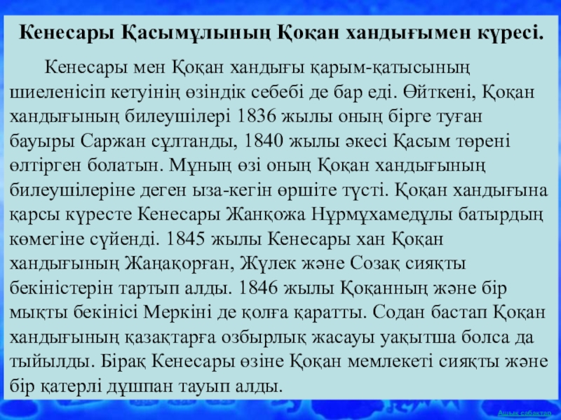 Жауабы: Кенесары Қасымұлы ірі жеңіске жетті.