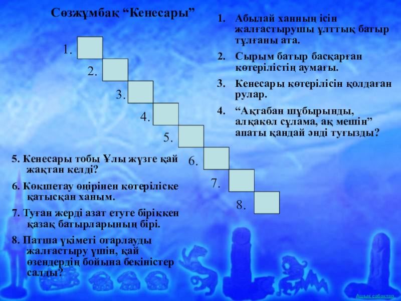 7. Туған жерді азат етуге біріккен қазақ батырларының бірі.