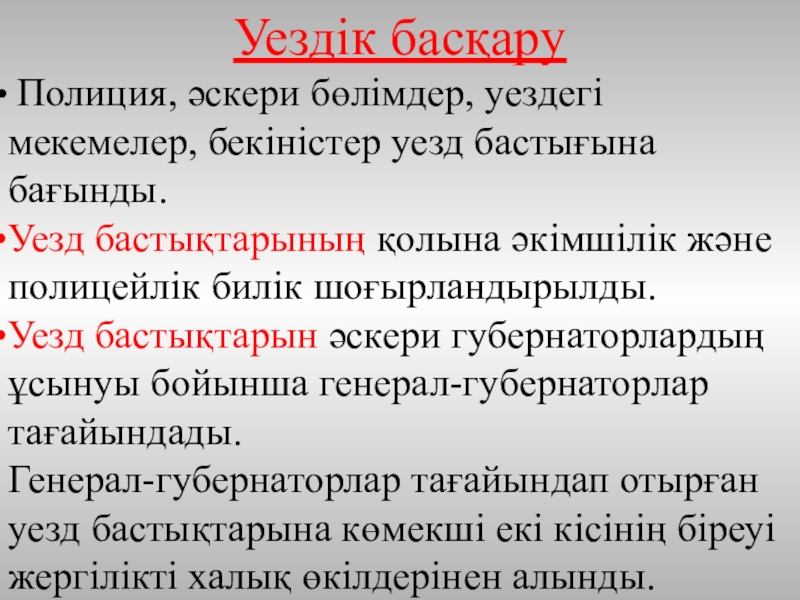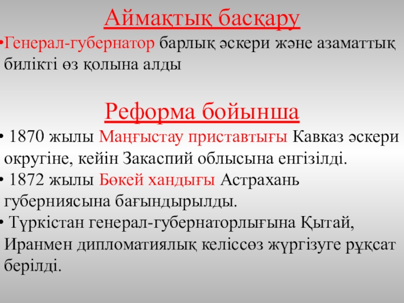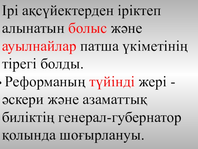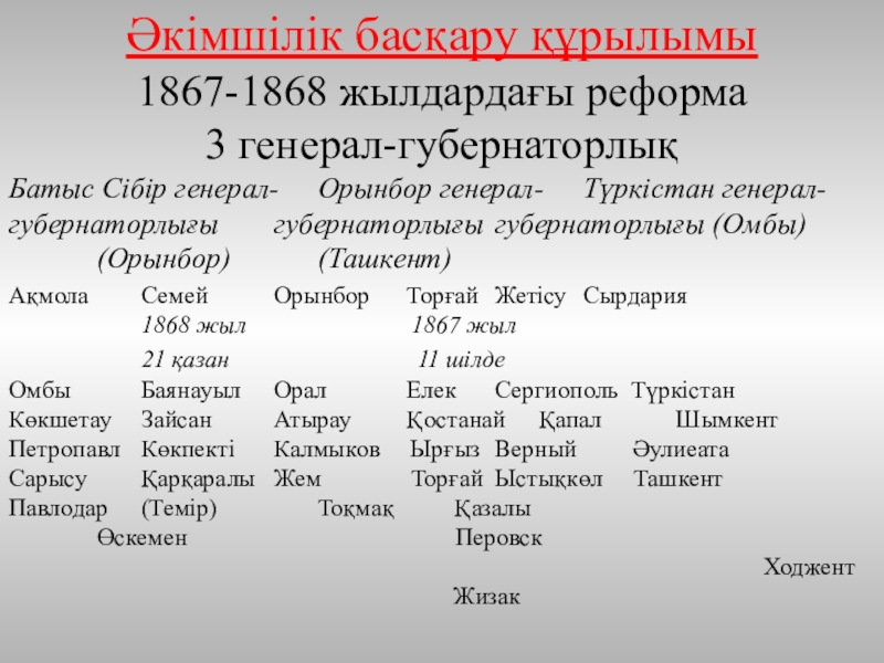 Слайд 2751. 1867-1868 жж. Реформаға сәйкес басқарудың ең төменгі екі сатысындағы болыстар