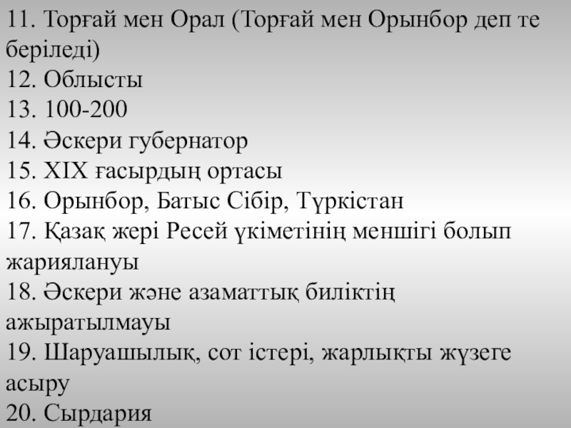 Слайд 2541. Сібір және Сырдария әскери шептерін ұштастыру туралы ұсыныс жасаған Батыс