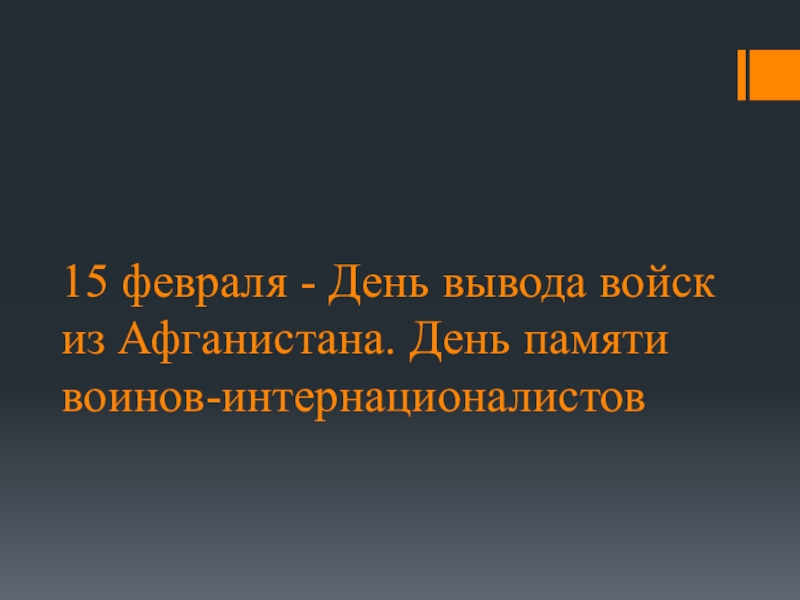 Слайд 115 февраля - День вывода войск из Афганистана. День памяти воинов-интернационалистов