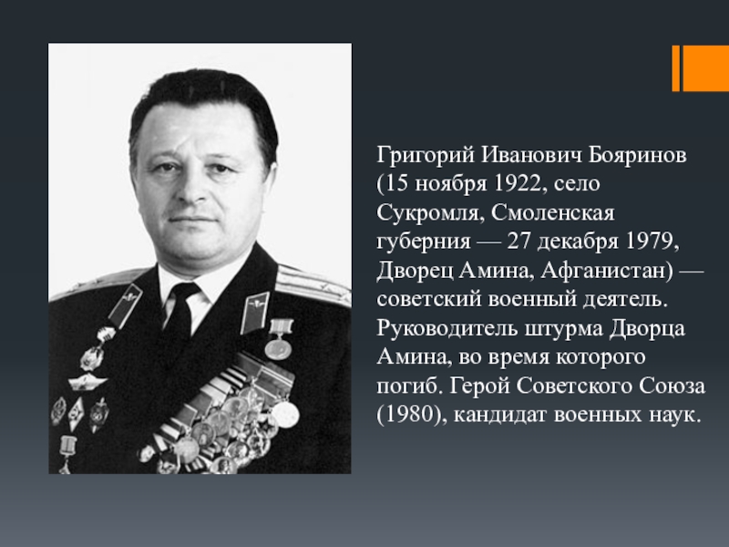 Слайд 15Григорий Иванович Бояринов (15 ноября 1922, село Сукромля, Смоленская губерния —
