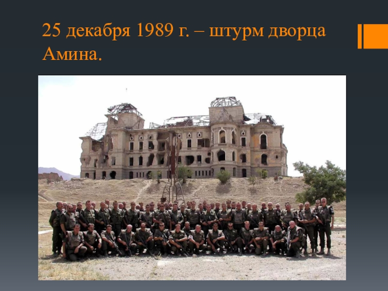 Слайд 1425 декабря 1989 г. – штурм дворца Амина.
