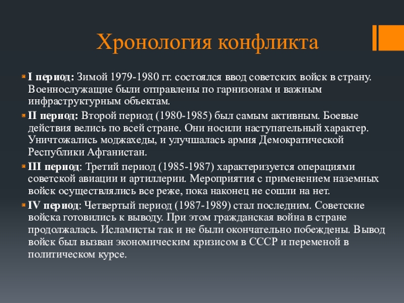 I период: Зимой 1979-1980 гг. состоялся ввод советских войск в