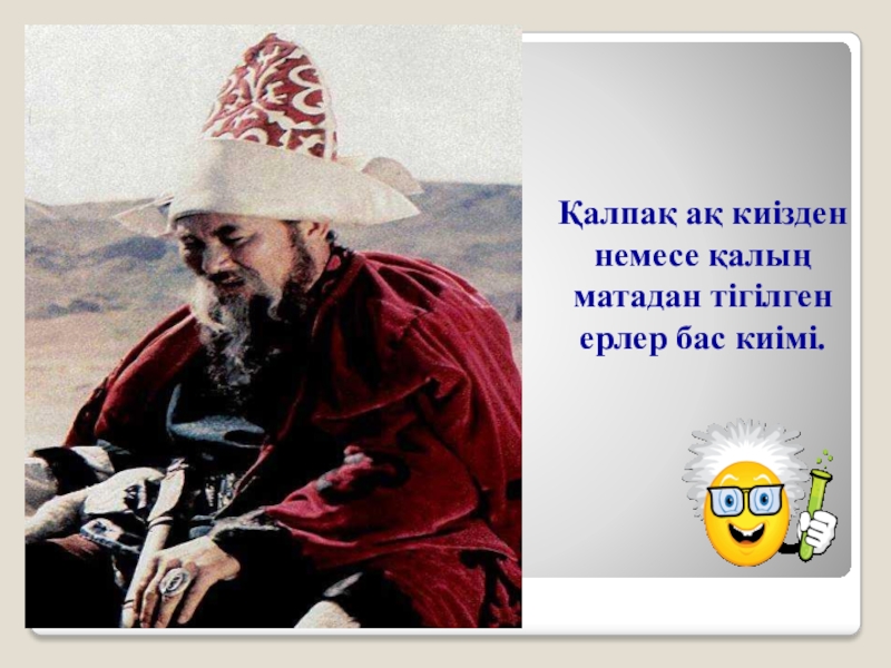 Слайд 7Қалпақ ақ киізден немесе қалың матадан тігілген ерлер бас киімі.