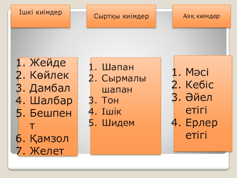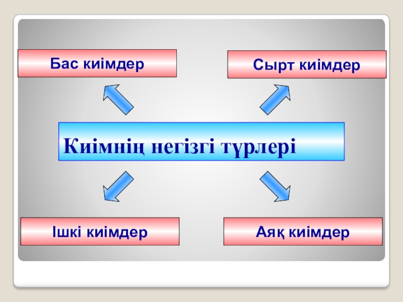 Киімнің негізгі түрлеріБас киімдерСырт киімдерІшкі киімдерАяқ киімдер