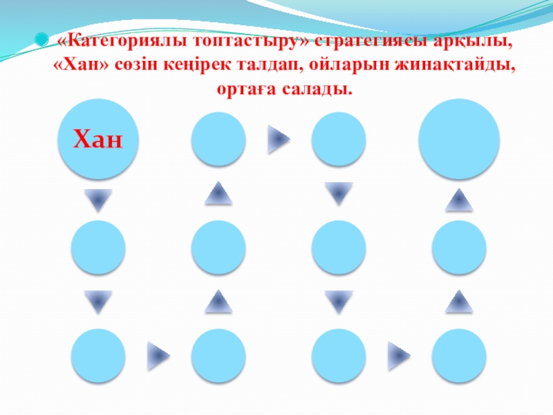 Слайд 6«Категориялы топтастыру» стратегиясы арқылы, «Хан» сөзін кеңірек талдап, ойларын жинақтайды, ортаға