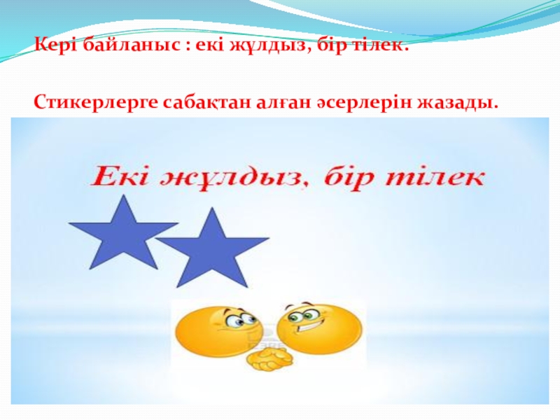Слайд 11Кері байланыс : екі жұлдыз, бір тілек.