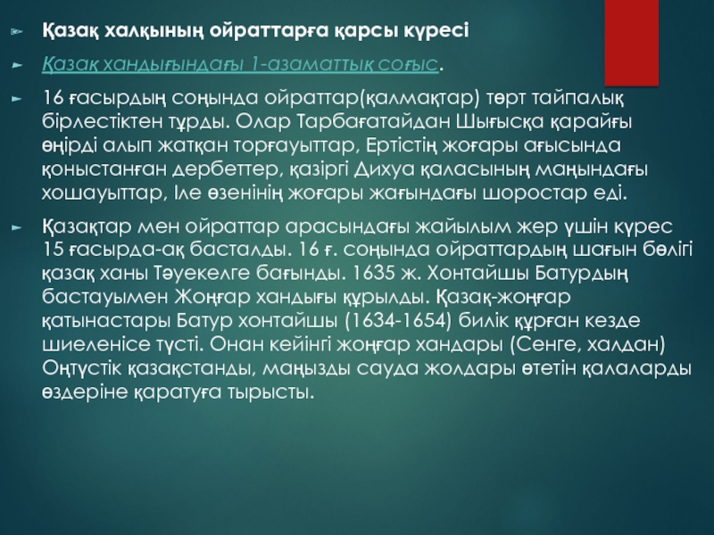 Слайд 30Қазақ халқының ойраттарға қарсы күресі