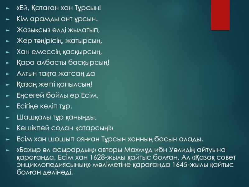 Слайд 25«Ей, Қатаған хан Тұрсын!